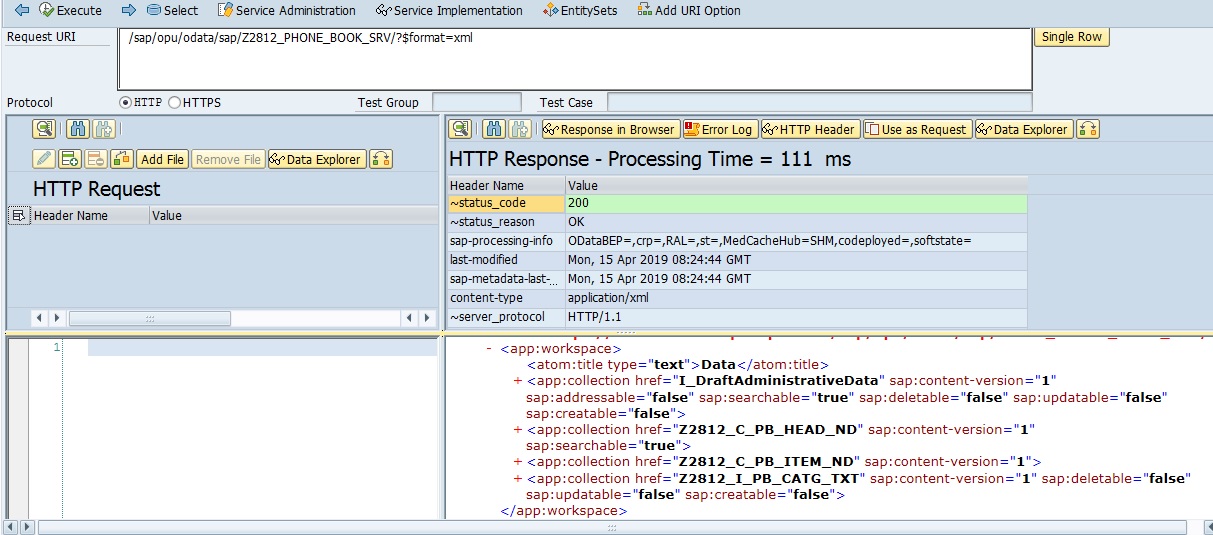 - Test OData Service using SAP Gateway Client
